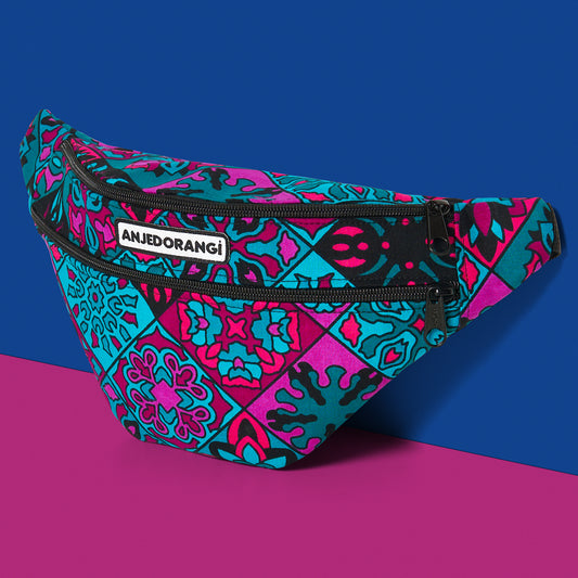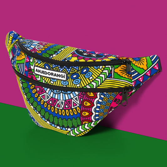 Shop handmade bum bags in colourful African prints. These versatile belt bags can be worn around the waist or as a cross-body over the shoulder, making them perfect for festivals or everyday use. With two spacious compartments, detachable buckles, and extendable straps, these bags are designed to keep your valuables secure and easily accessible, whether you're walking the dog or jetting off on holiday.